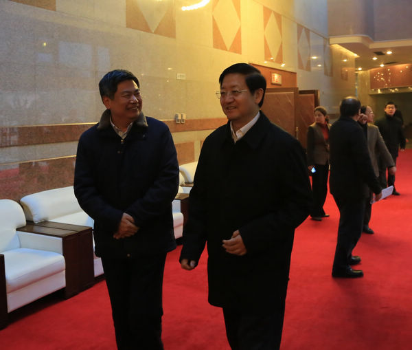會(huì)議期間,省委常委、省紀(jì)委書記王懷臣與省政協(xié)常委蘇華親切交談
