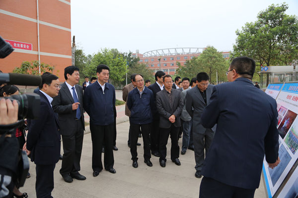 李向志率隊(duì)視察了中江職中的禁毒展覽室和各類依法治校展板,聽(tīng)取了蘇華關(guān)于四川現(xiàn)代教育集團(tuán)和中江職中近年來(lái)依法治校工作的情況介紹。李向志對(duì)四川現(xiàn)代教育集團(tuán)和中江職中近年來(lái)在依法治校方面所取得的成績(jī)給予了高度評(píng)價(jià)。李向志指出,學(xué)校將普法教育、依法治校與日常管理相結(jié)合,大力開(kāi)展品德教育、禁毒教育和平安校園建設(shè),增強(qiáng)了師生的法治意識(shí),成為民辦職教的一個(gè)先進(jìn)典型,值得肯定。李向志在視察中說(shuō):“今天我們進(jìn)縣、進(jìn)村現(xiàn)在又進(jìn)校,中江職中是一所民辦公助的新體制學(xué)校,作為一所中職學(xué)校,學(xué)校結(jié)合立德樹(shù)人的育人宗旨,在包括依法治校、踐行社會(huì)主義核心價(jià)值體系等方面做了大量的工作。學(xué)校作為全國(guó)民辦職業(yè)學(xué)校改革試點(diǎn)的一個(gè)先進(jìn)單位,實(shí)現(xiàn)零吸毒、零犯罪等多個(gè)目標(biāo),校園治安秩序良好,在禁毒方面也收到了良好的效果,受到了公安部的表彰?!?
