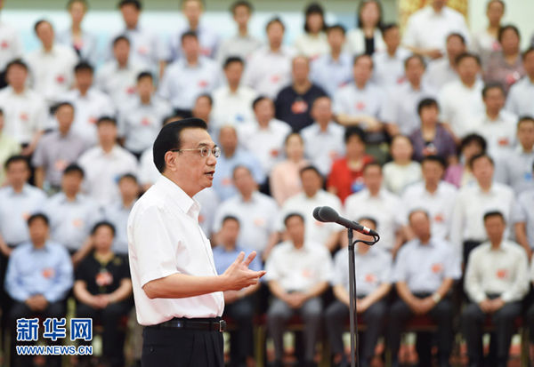 中共中央政治局常委、國務(wù)院總理李克強(qiáng)在會前親切接見與會全體代表并作重要講話。(圖片來源:新華社)