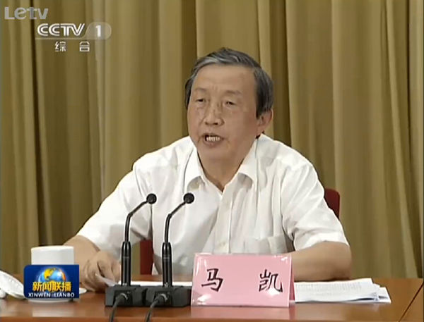 中共中央政治局委員、國務(wù)院副總理馬凱在會上作重要講話。(圖片來源:央視新聞)